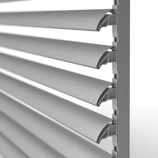 NIEUW: Om steeds een oplossing op maat te kunnen aanbieden, heeft DUCO zijn bestaande gamma van schuifsystemen uitgebreid met een dynamische vorm van architecturale buitenzonwering. De vouwende panelen, die het gevelbeeld van elk gebouw accentueren, zorgen ervoor dat er een duidelijk esthetisch verschil merkbaar is bij open of gesloten stand. Voor een effectieve wering van het zonlicht bestaan de handmatig te bedienen panelen uit vaste aluminium lamellen of uit een geperforeerde aluminium plaat. Dit type is beschikbaar in zowel enkele (BiFold) als dubbele (QuadraFold) vouwpanelen.