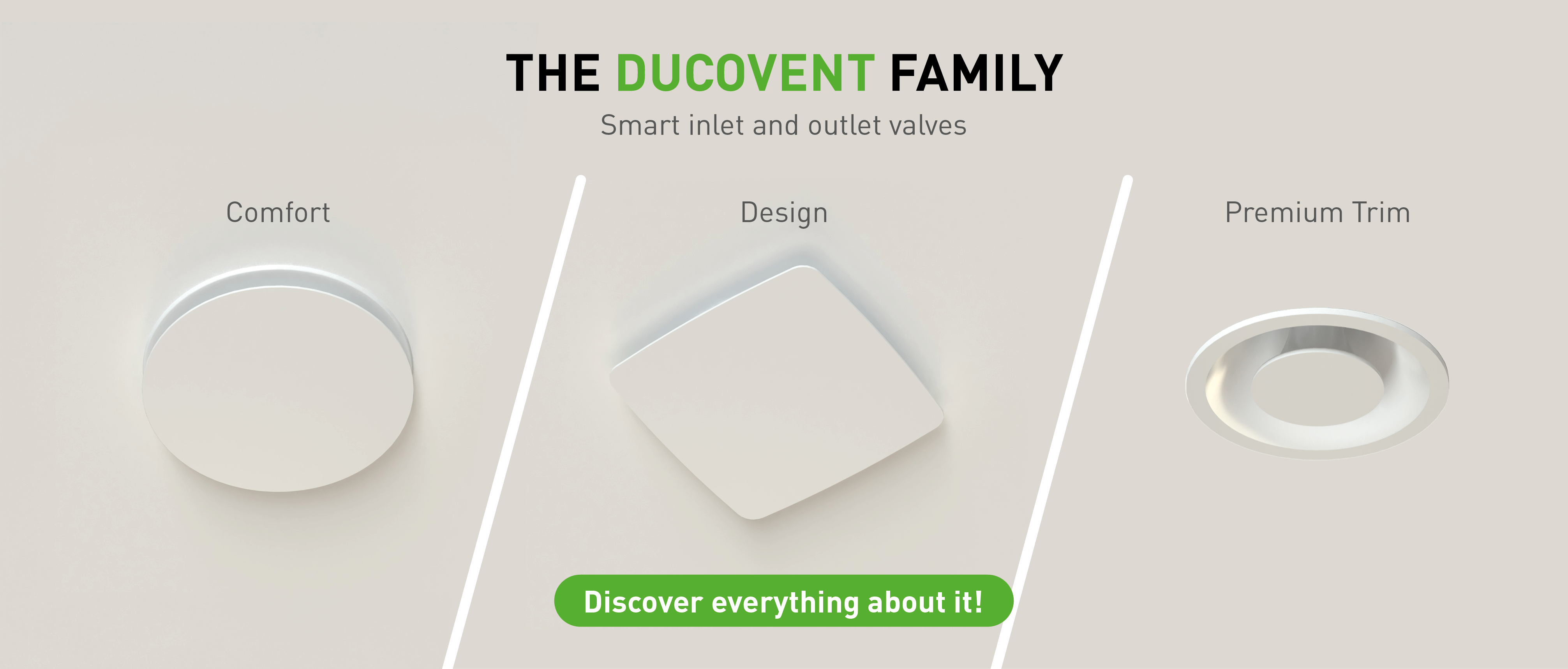 Ventilation you don't see, but definitely feel. With The DucoVent Family, DUCO launches a range of four air valves that combine technical performance with sleek, discreet design.