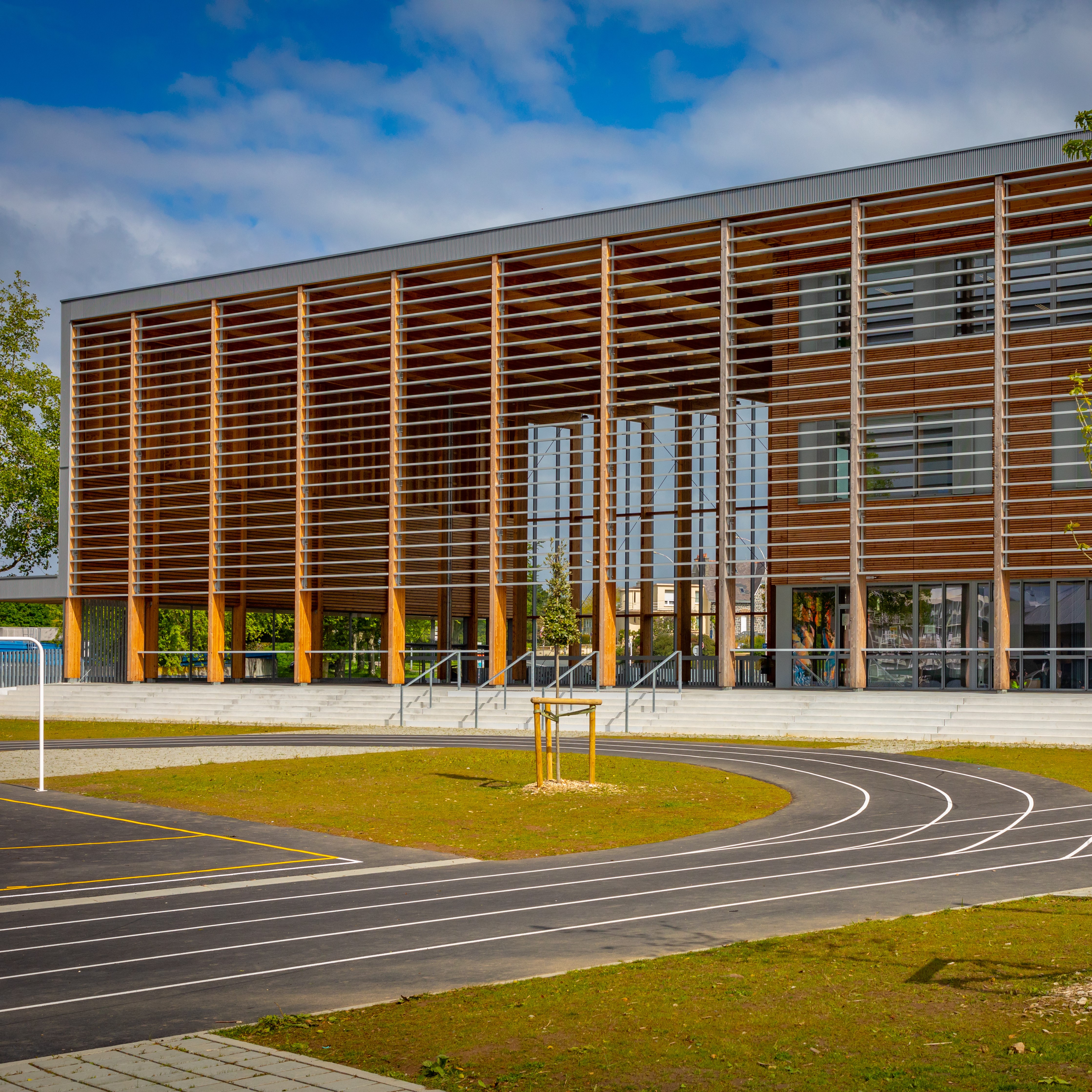 La restauration du collège Jean-Racine a été l'occasion de transformer l'environnement également. Le bâtiment fermé en forme de U a fait place à deux complexes distincts, créant de la sorte une connexion transparente entre la Place de la Liberté et le parc Ty-Coat. La cour centrale du collège est ainsi entourée par le bâtiment réservé à l'enseignement, le restaurant et le complexe sportif.