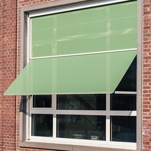 La Vrije Basisschool De Robbert, à Hamont-Achel, a opté pour un système de protection solaire extérieure qui est montée sur un bras articulé. La toile de protection solaire est capable de bloquer la chaleur sans sacrifier la luminosité ni le sentiment d’ouverture.