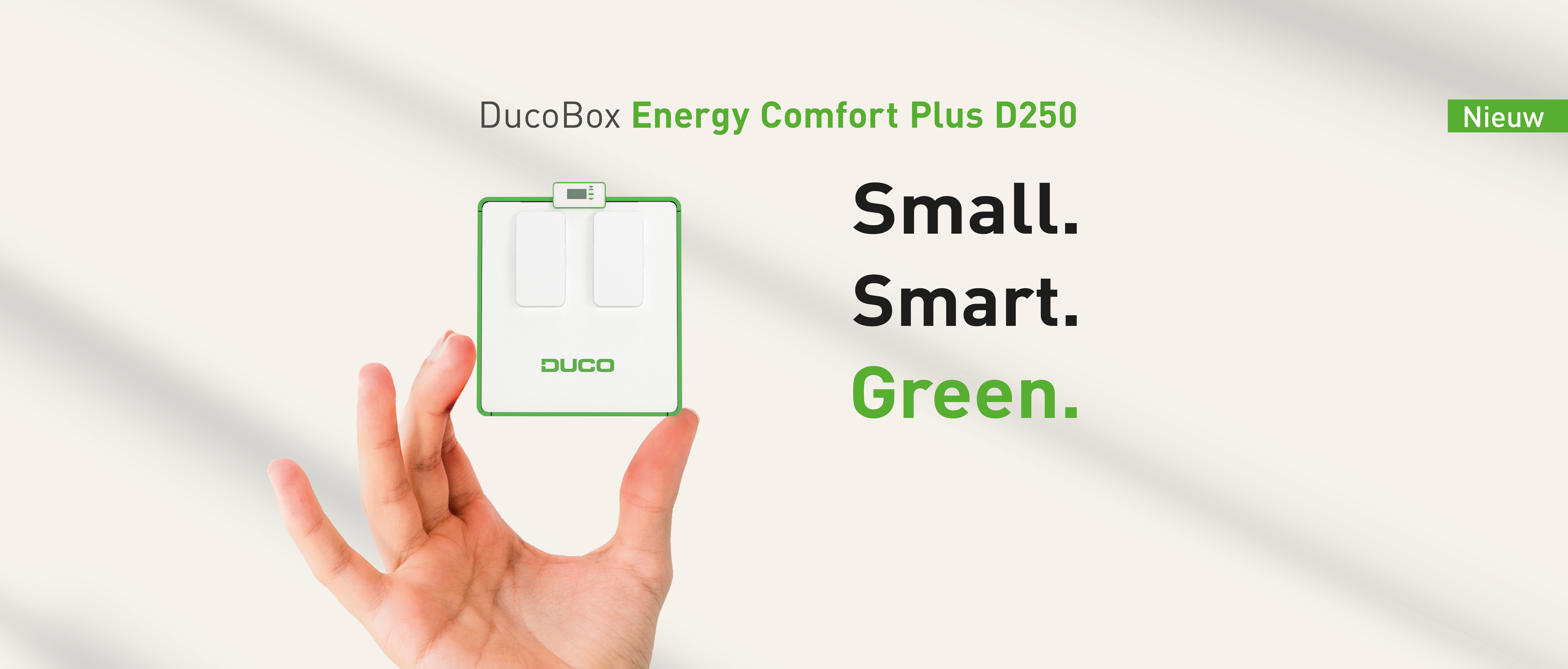 Maak kennis met de game-changer voor compacte projecten: de DucoBox Energy Comfort (Plus) D250. Het kleinste ventilatiesysteem D ooit, dat volledige warmteterugwinning levert waar traditionele units simpelweg niet passen. Slimme technologie, maximale efficiëntie, minimale voetafdruk.