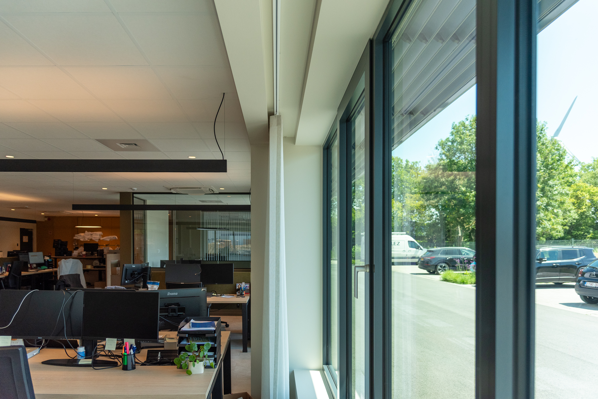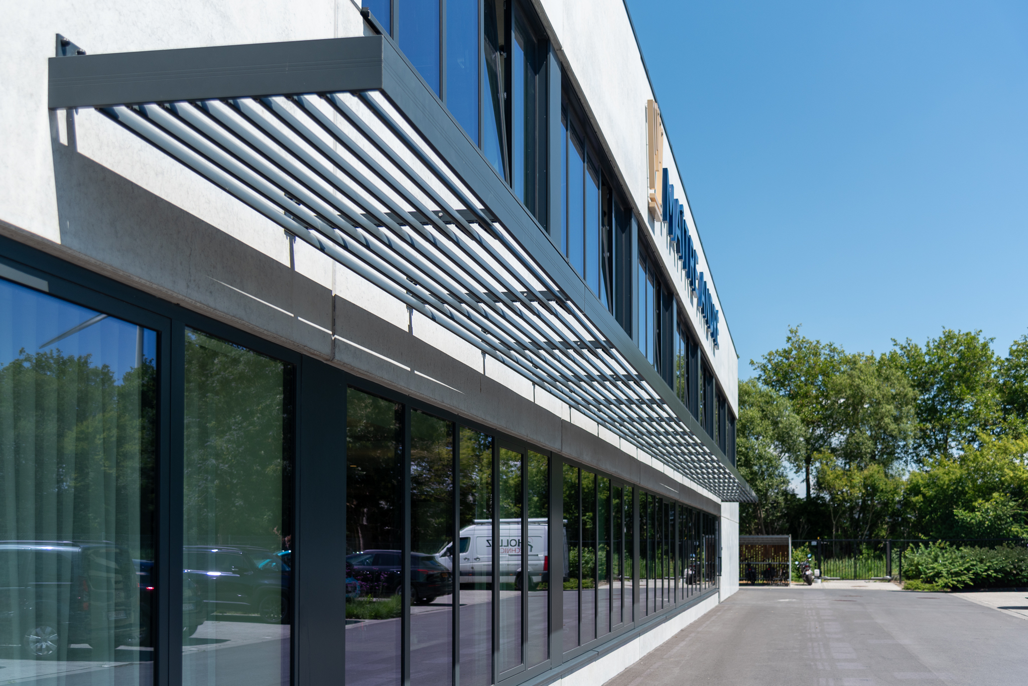 Voor Maître André was het cruciaal om een oplossing te vinden die de zonnehitte buiten houdt terwijl er voldoende daglicht binnenkomt - essentieel voor een productieve kantooromgeving waar precisie en kwaliteit centraal staan.