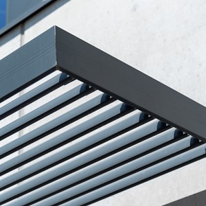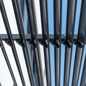 - Aluminium lamellen type 100D onder een vaste hellingshoek van 45°