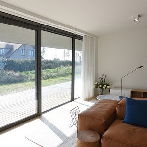 In de woonkamer werd gekozen voor het toevoerrooster ClimaTop 60. Dit ventilatierooster warmt de buitenlucht immers voor via een warmtestrip, als de buitentemperatuur onder de 12°C zakt én als het CO2-gehalte in de ruimte te hoog oploopt. Tijdens de wintermaanden zorgt dit voor een aangename temperatuur, met een rendement van 99 %.