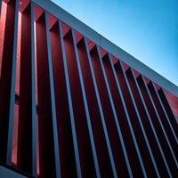 Wim Vanacker, VAMarchitects: "The DucoSun Cubic louvres give the building its specific look. This is reinforced by the coloured LED lighting at the bottom of the louvre blades in the colours of the FortyFour house style, which gives the building a very elegant look."