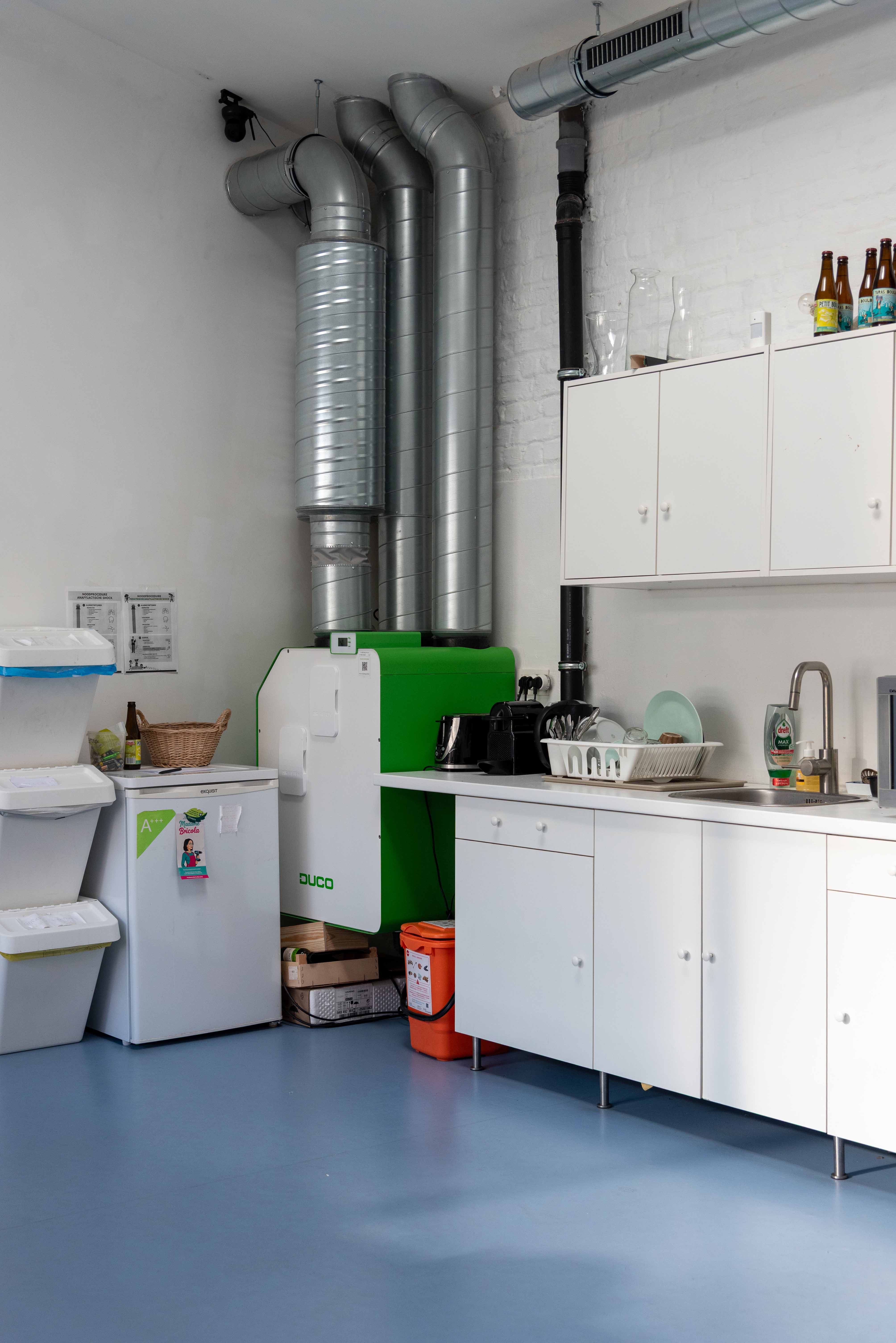 "The DucoFlex air ducting are almost a work of art in themselves!" according to Pieter Maes, referring to the photographs taken by photographer Stijn Bollaert after completion of the first phase. This statement illustrates how technology and aesthetics come together when installations are integrated with care into the architecture.