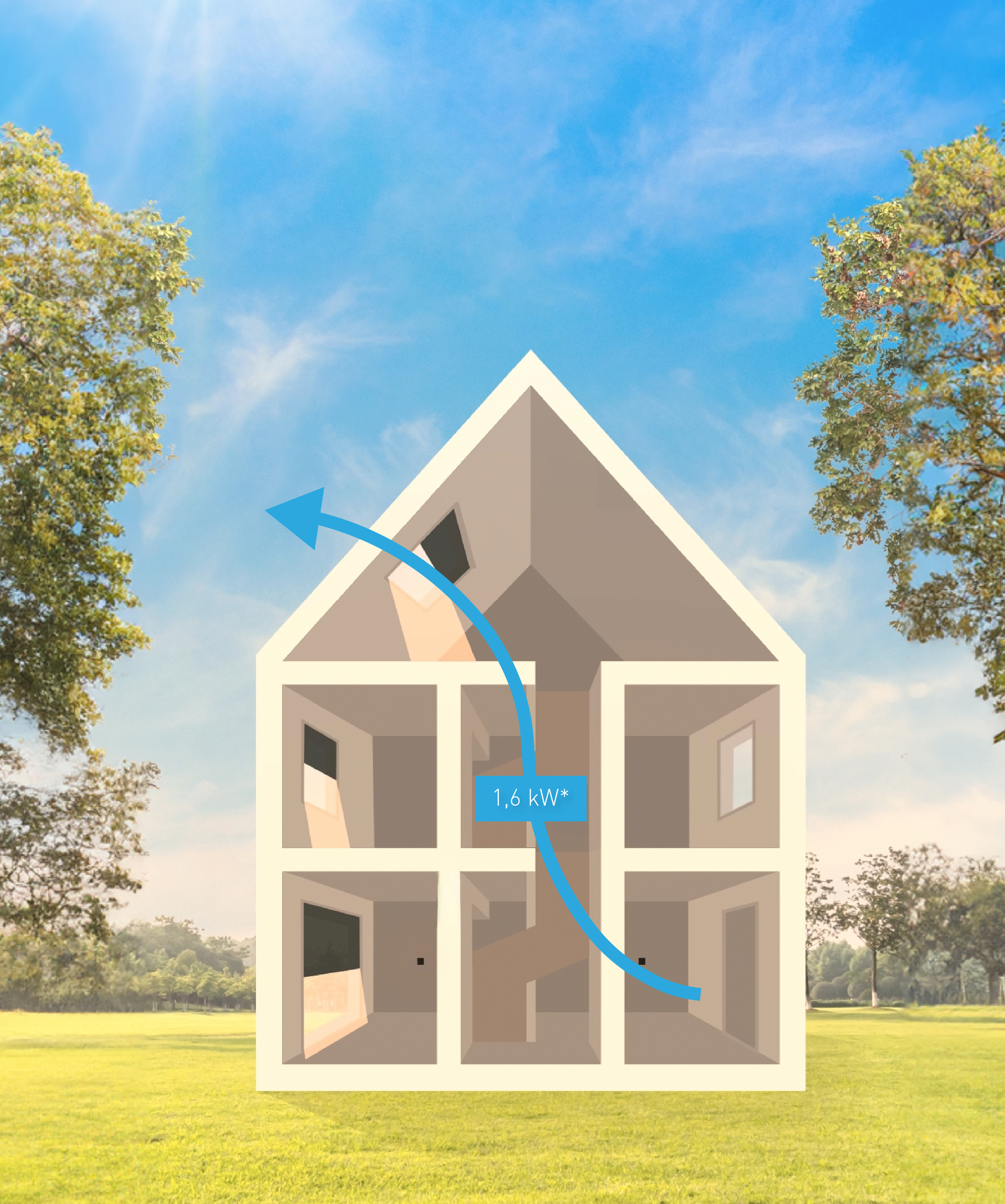 - Jusqu'à 700 W/m² d'apports solaires par jour ensoleillé (in ons voorbeeld 2000 W in totaal)