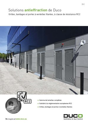 DUCO propose dans sa gamme de grilles plusieurs solutions innovantes qui répondent à la classe de résistance RC2 selon les normes européennes. Les portes à ventelles anti-effraction sont également disponibles jusqu'à la classe de résistance RC2. Grâce à un système breveté, les systèmes de bardage à ventelles filantes atteignent même la classe de résistance RC3. Ainsi, DUCO propose de nombreuses solutions anti-effraction qui conviennent parfaitement à une ventilation nocturne / ventilation d'évacuation.