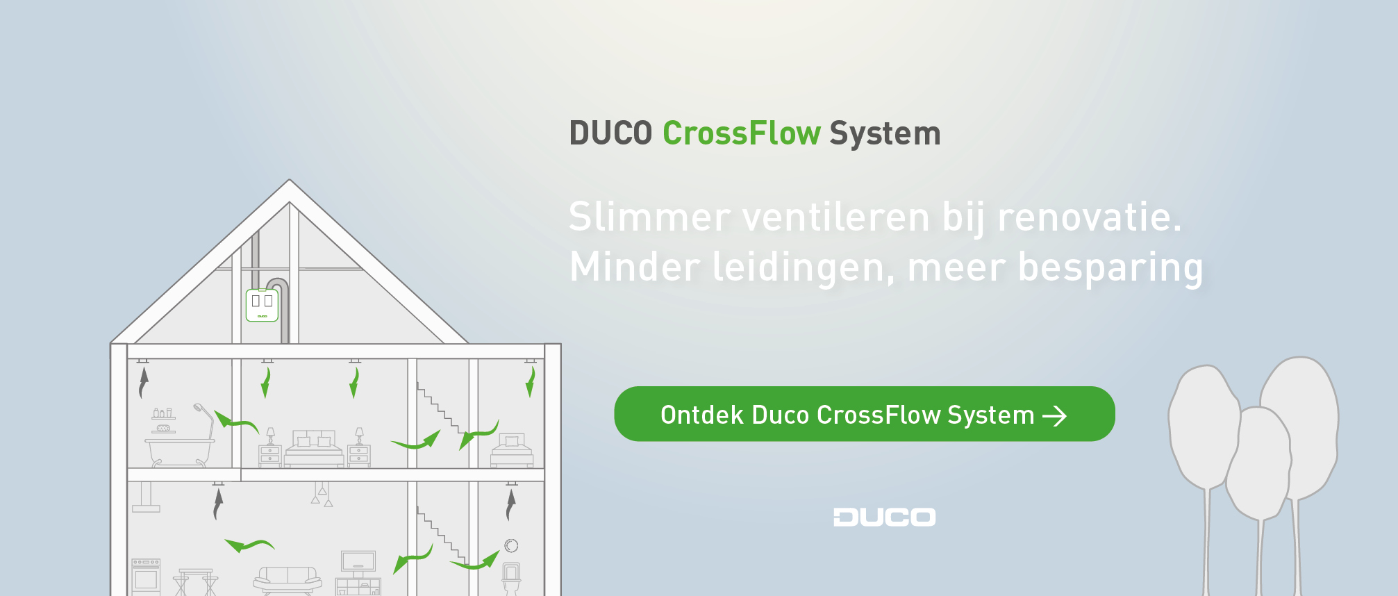 Ventilatie met warmteterugwinning in bestaande woningen? Het Duco CrossFlow System maakt het eenvoudiger en betaalbaarder dan ooit.