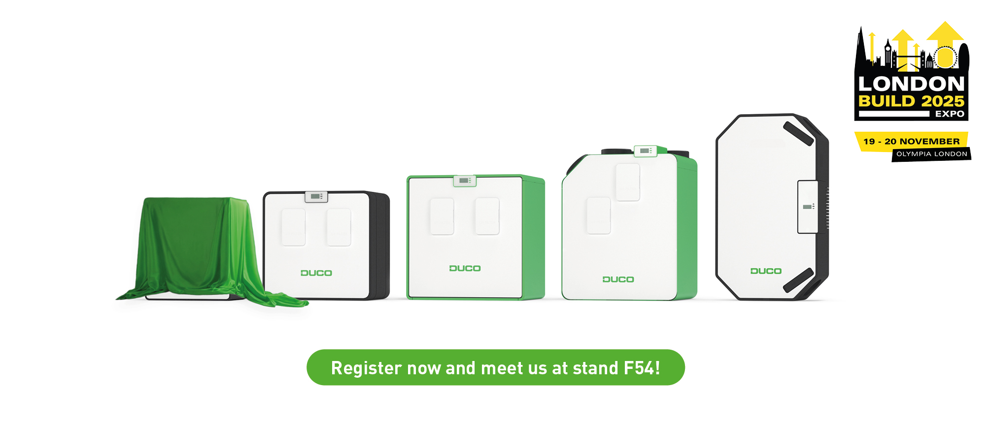 From 19 to 20 November, DUCO will be present at London Build Expo in London, where we'll be presenting our latest ventilation solutions to the British market. Our stand F54 offers a comprehensive overview of both The Natural Family and The Energy Family.