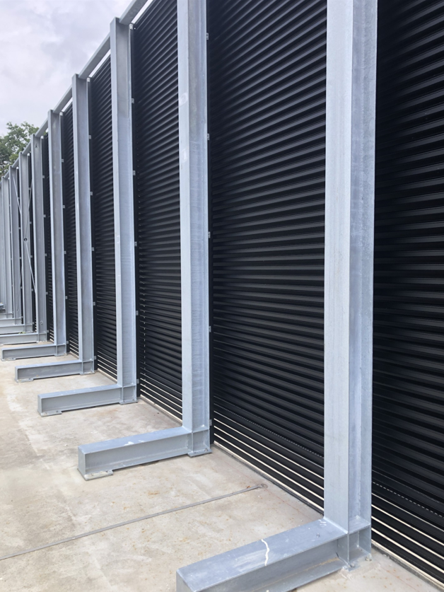 The JUPITER MDC now features a complete louvre-wall façade that supports the facility's cooling requirements whilst providing a unified architectural appearance.